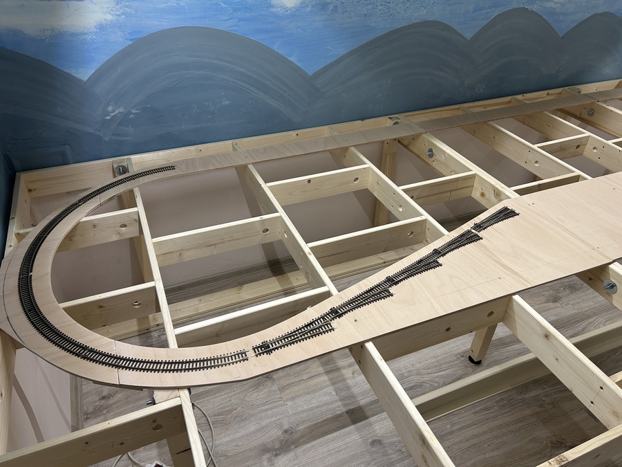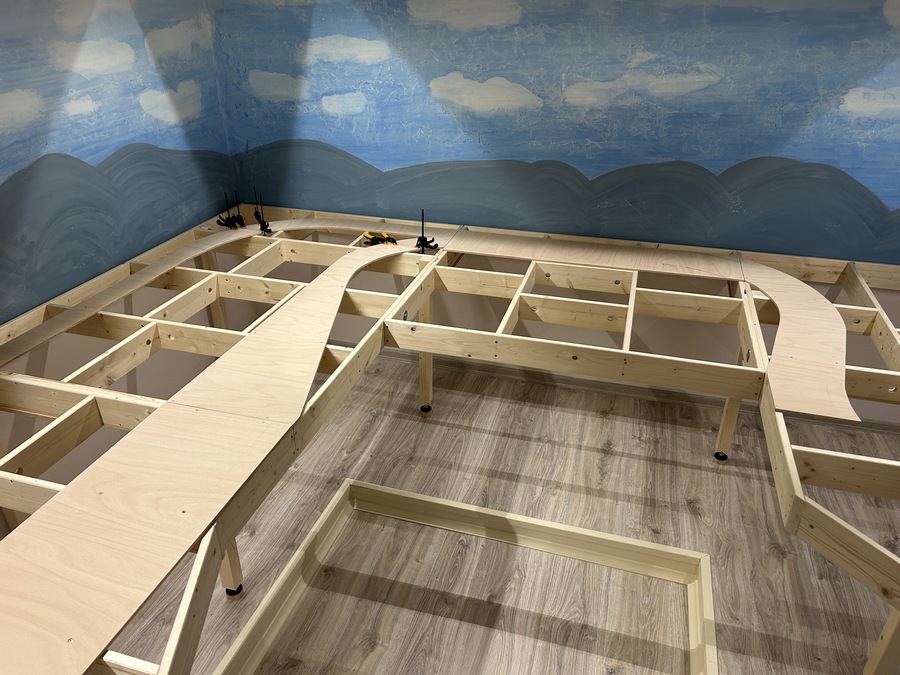 Hlavná časť koľajiska pre stavbu hlavnej trate číta spolu 6 rámov + ďalšie 2 rámy pre vedľajšiu trať. Tieto sú rovnako ako nohy spojené metrickými 8mm šróbami s podložkami. Po postavení koľajovej cesty budú rámy v niektorých čelných miestach ešte upravené do oblúkov tak aby to bolo pekné a chrumkavé.