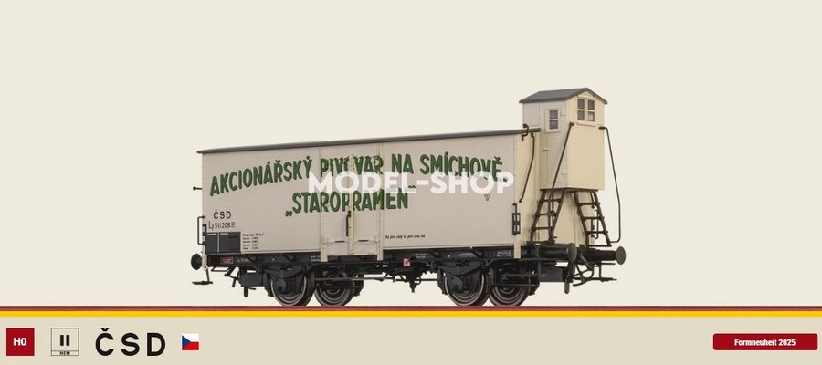 NV 023 / Krytý vozeň na prepravu piva "Staropramen" / ČSD